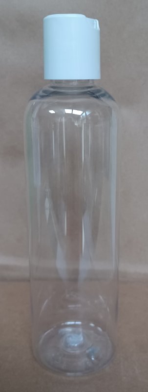 250 ml TALL BOSTON Clear PET Bottle with Push In Disc Cap - EMPTY