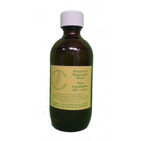 200 ml of Pure Broad Leaf Peppermint 'Dives' Eucalyptus Oil (Plantation) - Glass